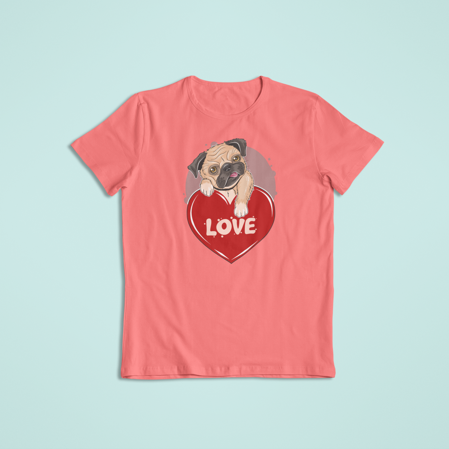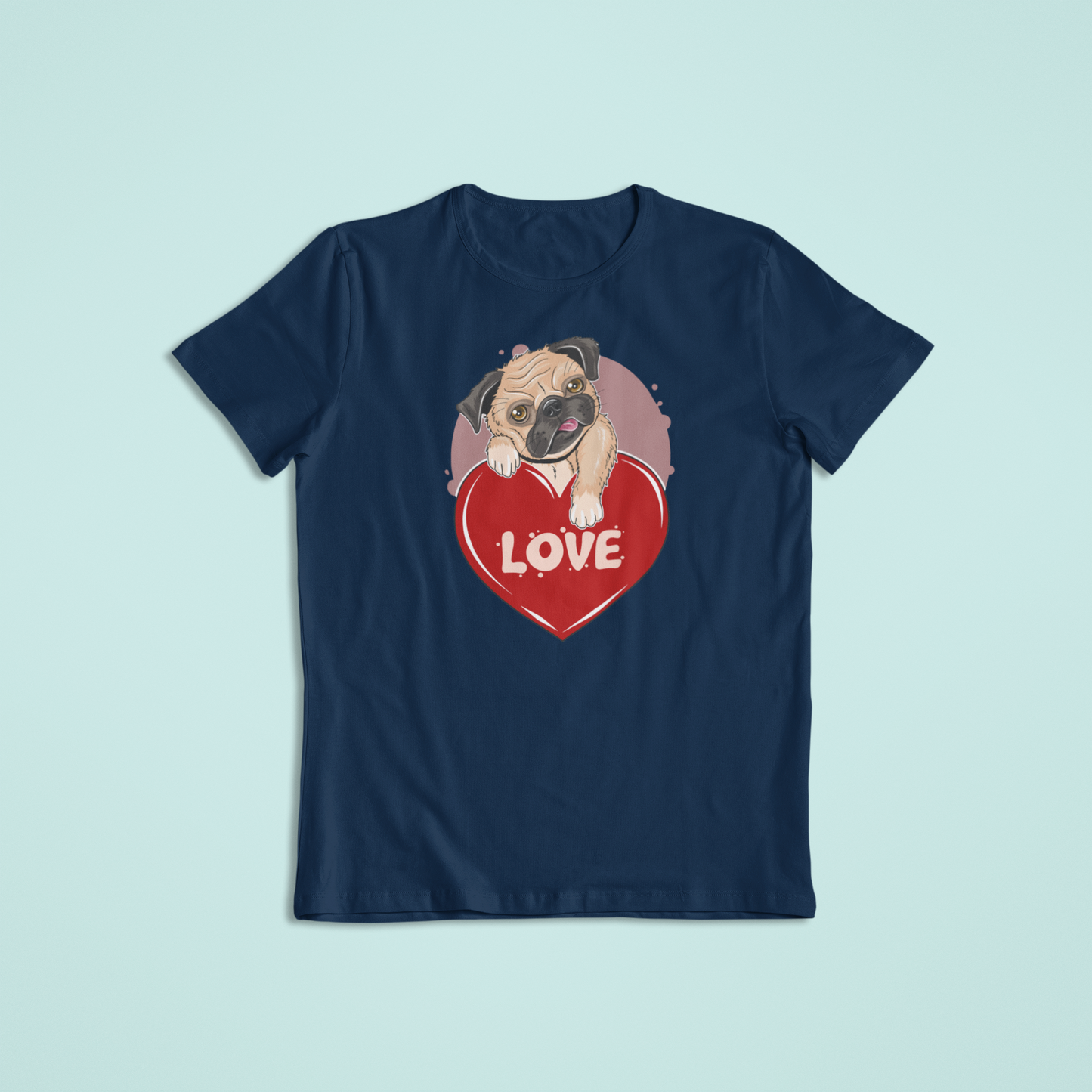 This T-shirt design captures the perfect bond between a dog and its owner, featuring a playful, joyful dog within a heart symbol that radiates warmth and love. Ideal for dog lovers, it celebrates the loyalty, companionship, and happiness that only a furry friend can bring. The design is both adorable and heartwarming, perfect for casual outings, dog park visits, or lounging with your pet at home. Show the world your love for dogs and carry a bit of that unconditional love wherever you go. This shirt is a great way to keep your best friend close to your heart.