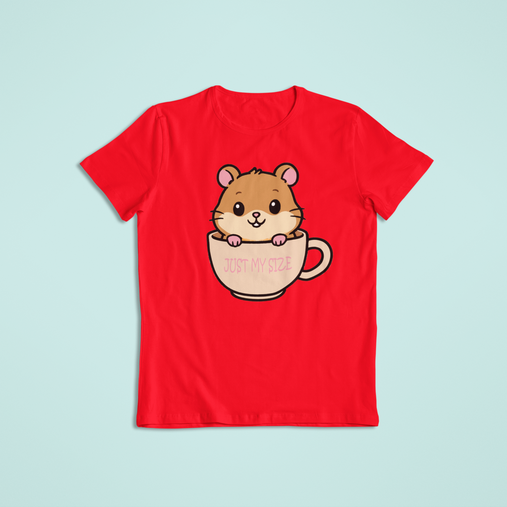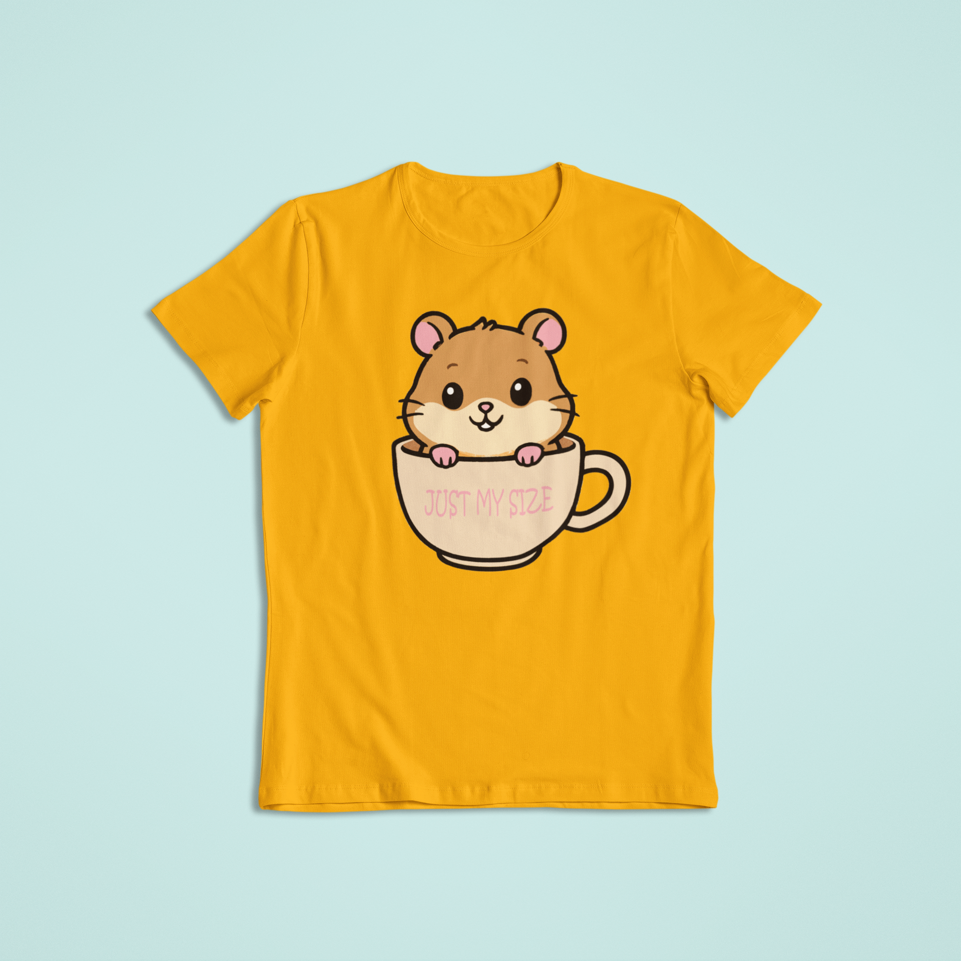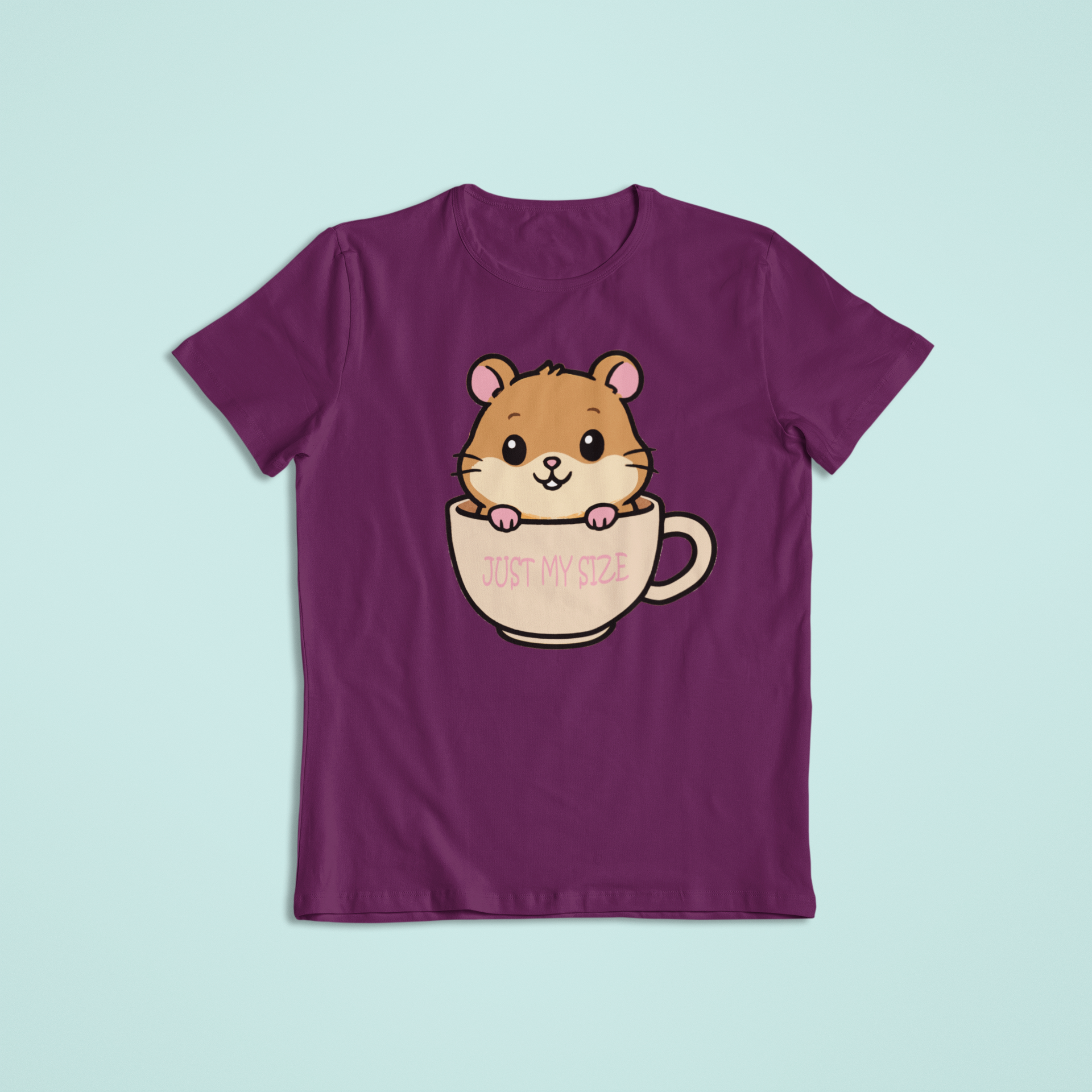 Add a touch of adorable charm to your wardrobe with our irresistibly cute Hamster in a Cup T-shirt and hoodie! This delightful design features a playful animated hamster peeking out of a cozy teacup, its tiny paws resting on the rim and glossy eyes sparkling with curiosity. With warm tones of orange-brown fur, pink cheeks, and a cream-colored cup, this artwork radiates joy, making it a perfect statement piece for animal lovers and kawaii fans alike.