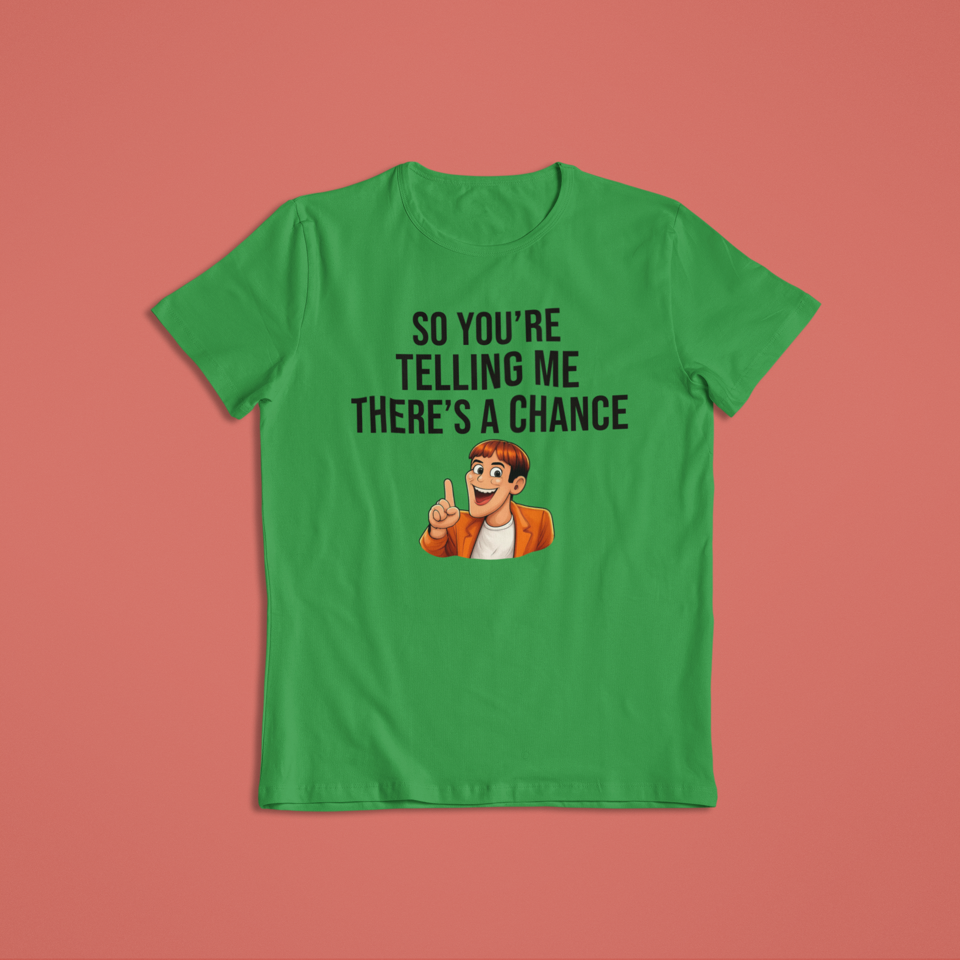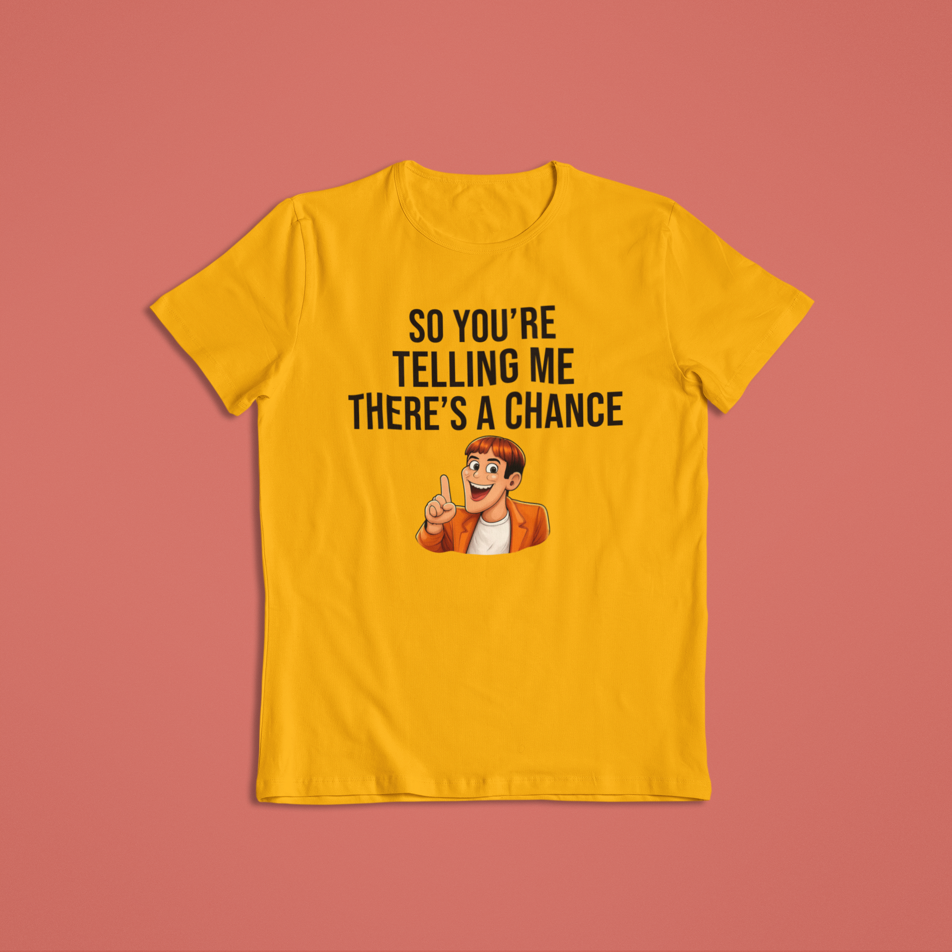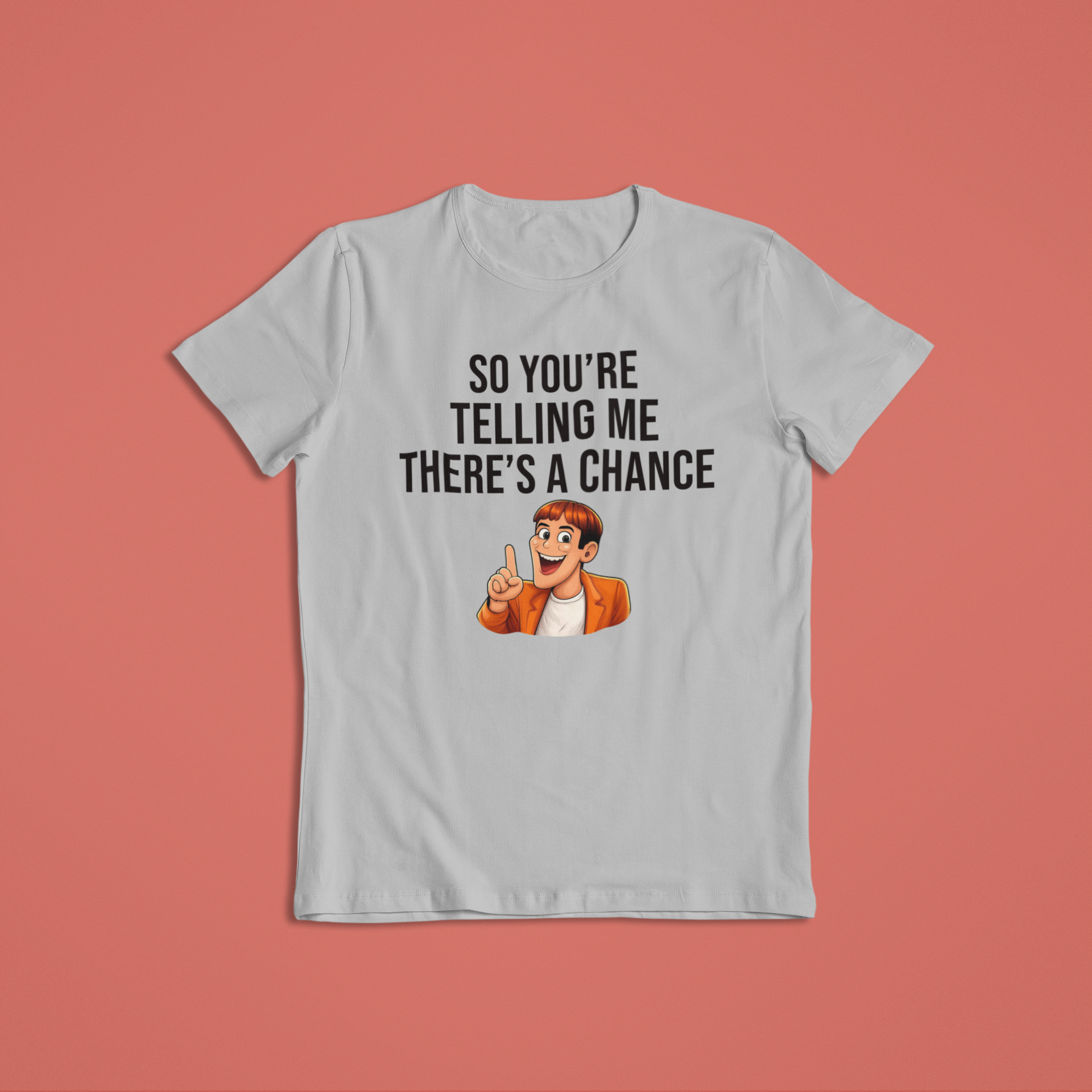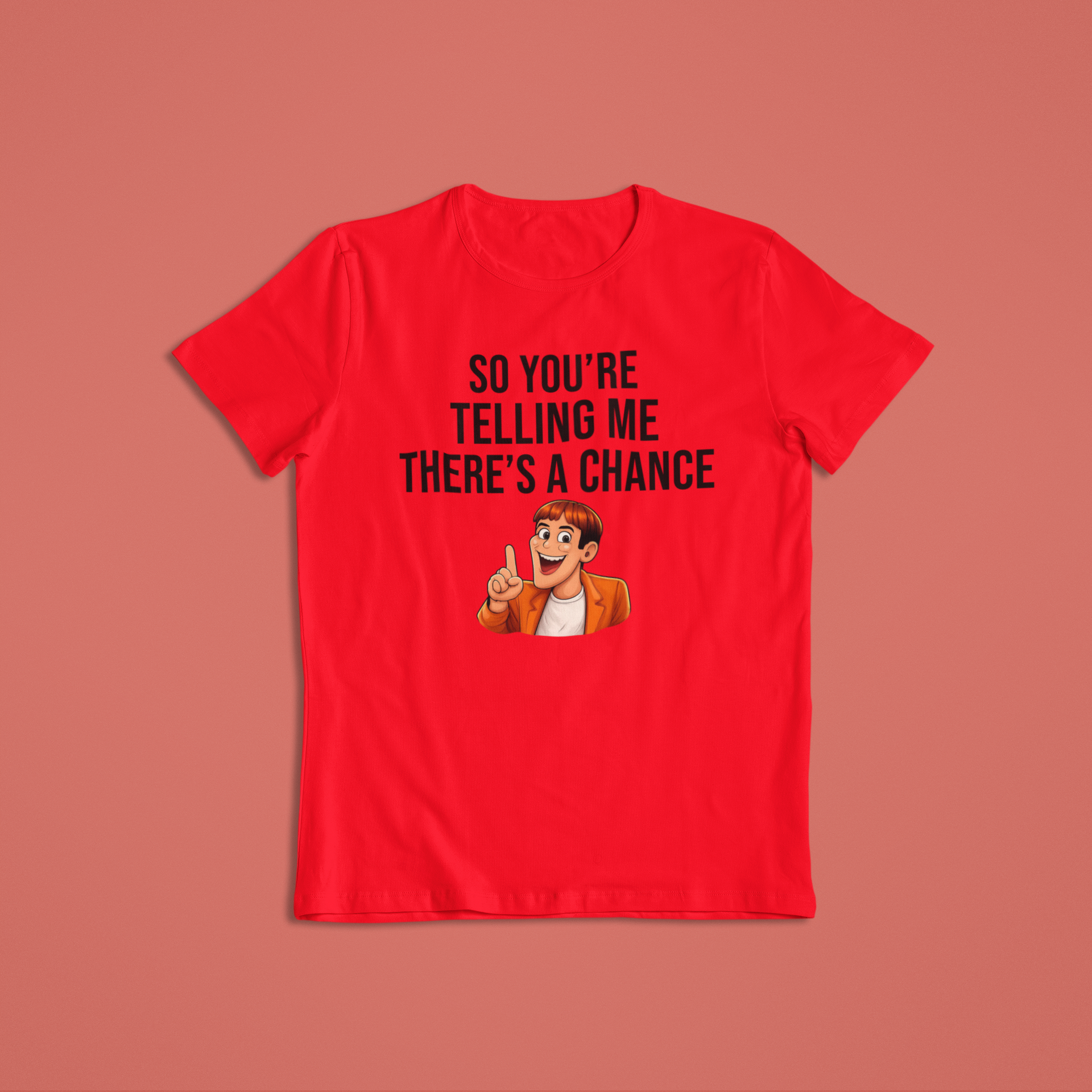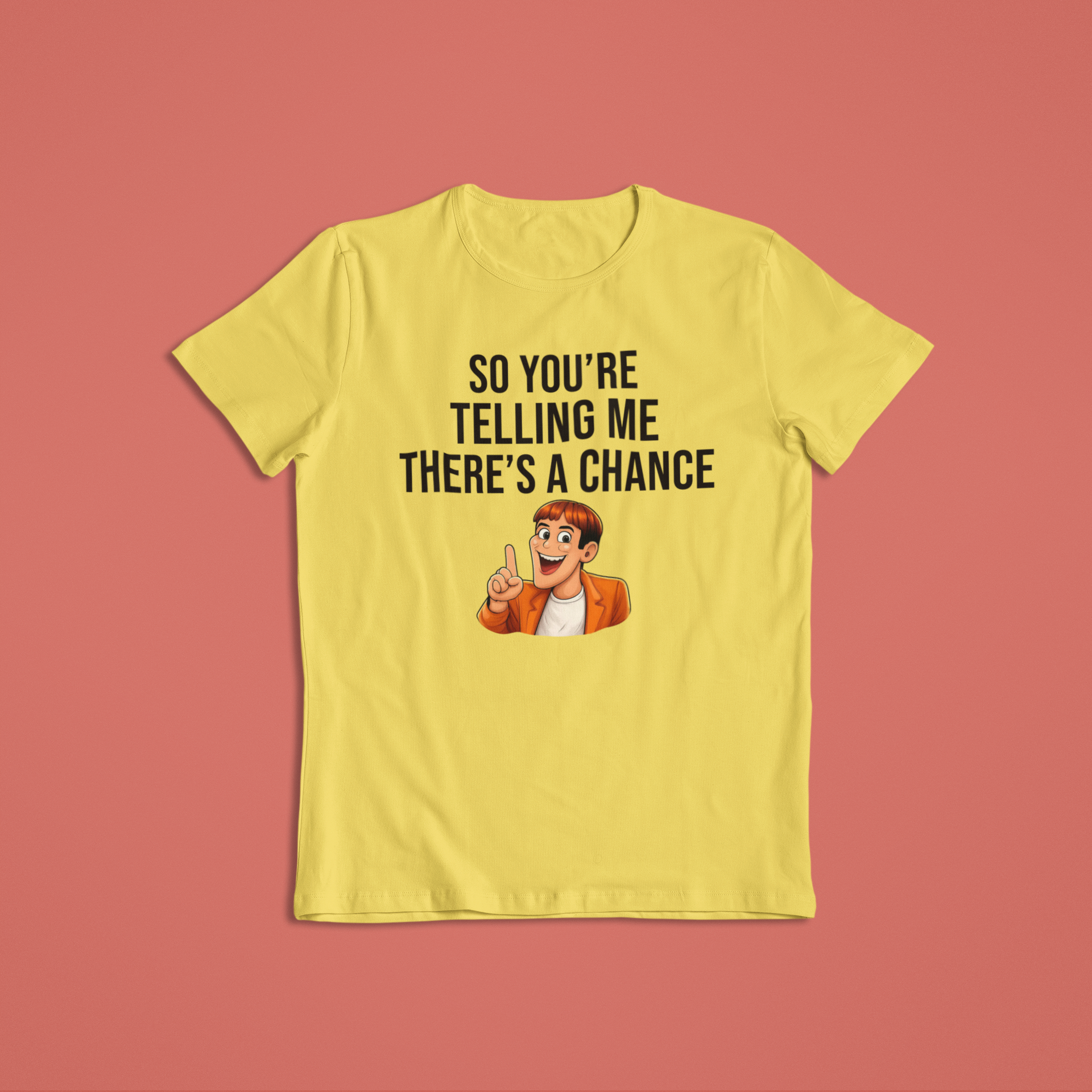 This fun, expressive design captures that exact moment of hopeful sarcasm we all know too well. Featuring a cheerful cartoon character with an “aha!” expression, this shirt or hoodie is perfect for anyone who loves humor, memes, and lighthearted optimism.