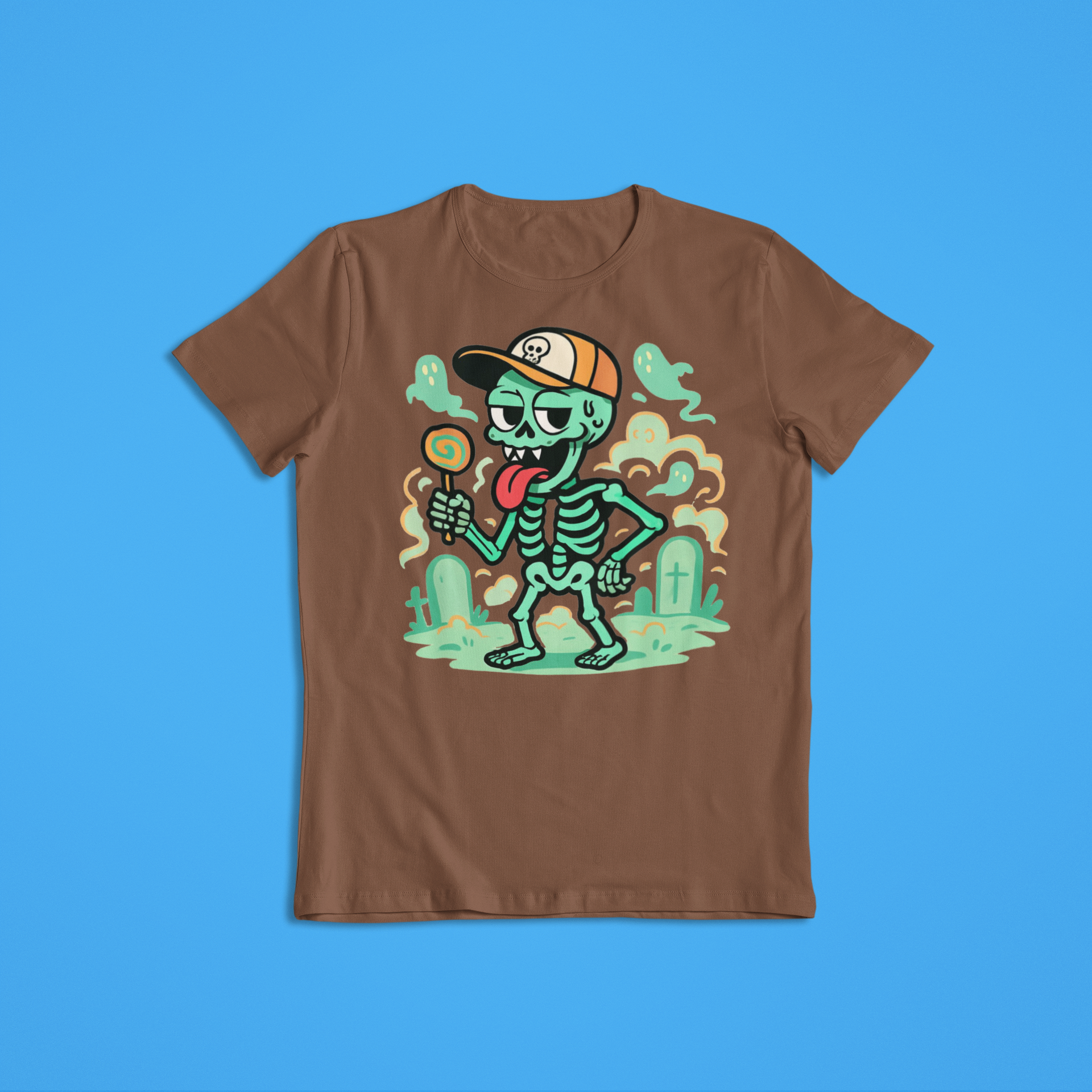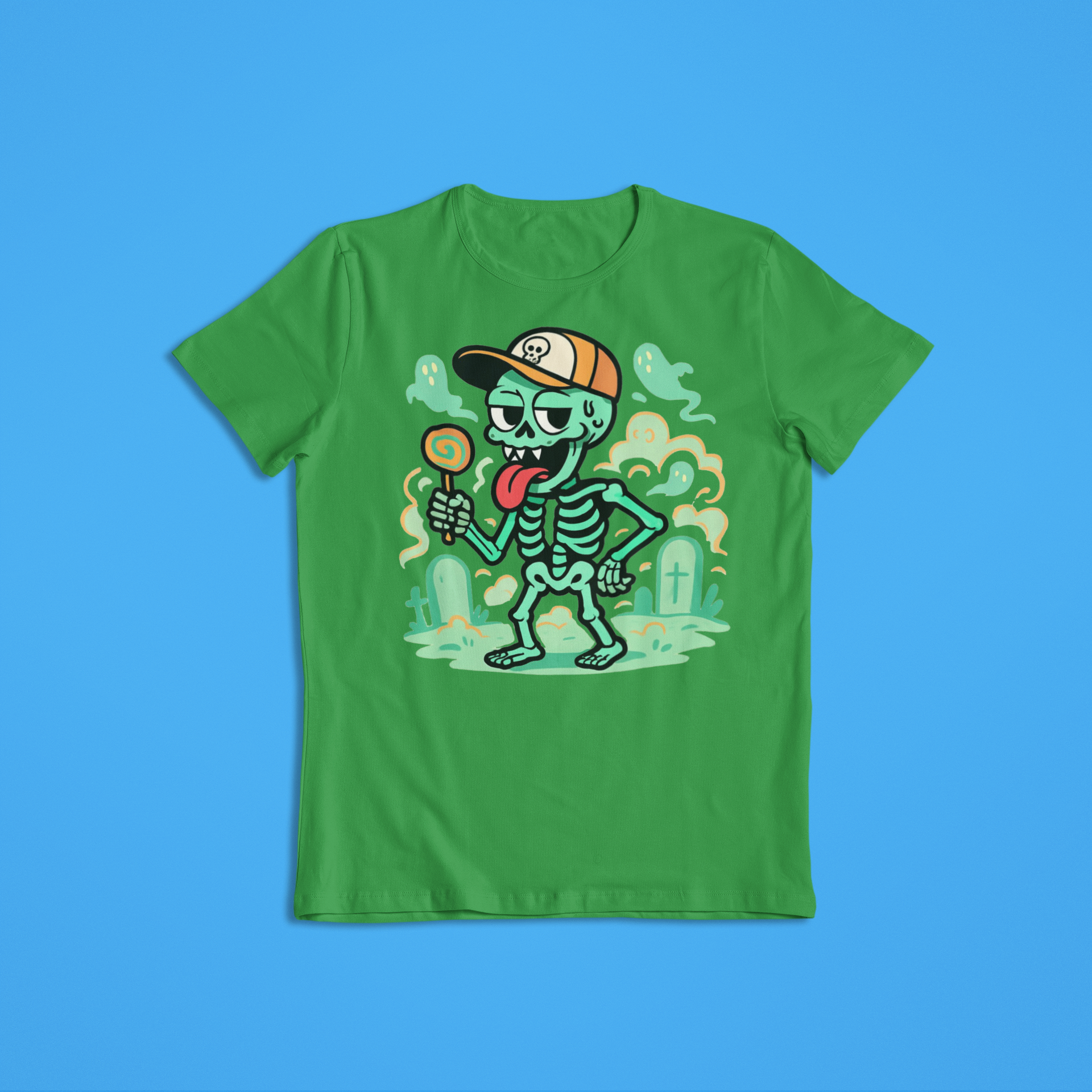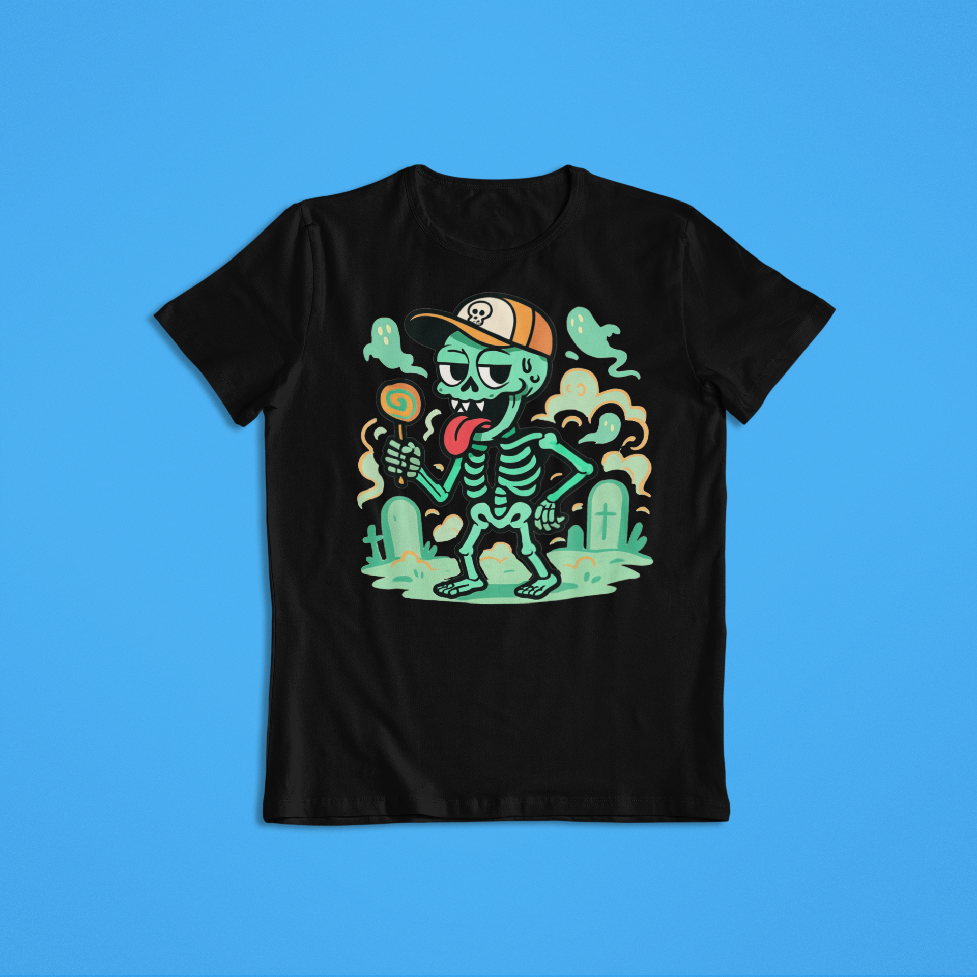 Funny Skeleton Shirt Hoodie | Cartoon Skeleton Lollipop Graphic Tee | Cool Halloween Streetwear Sweatshirt