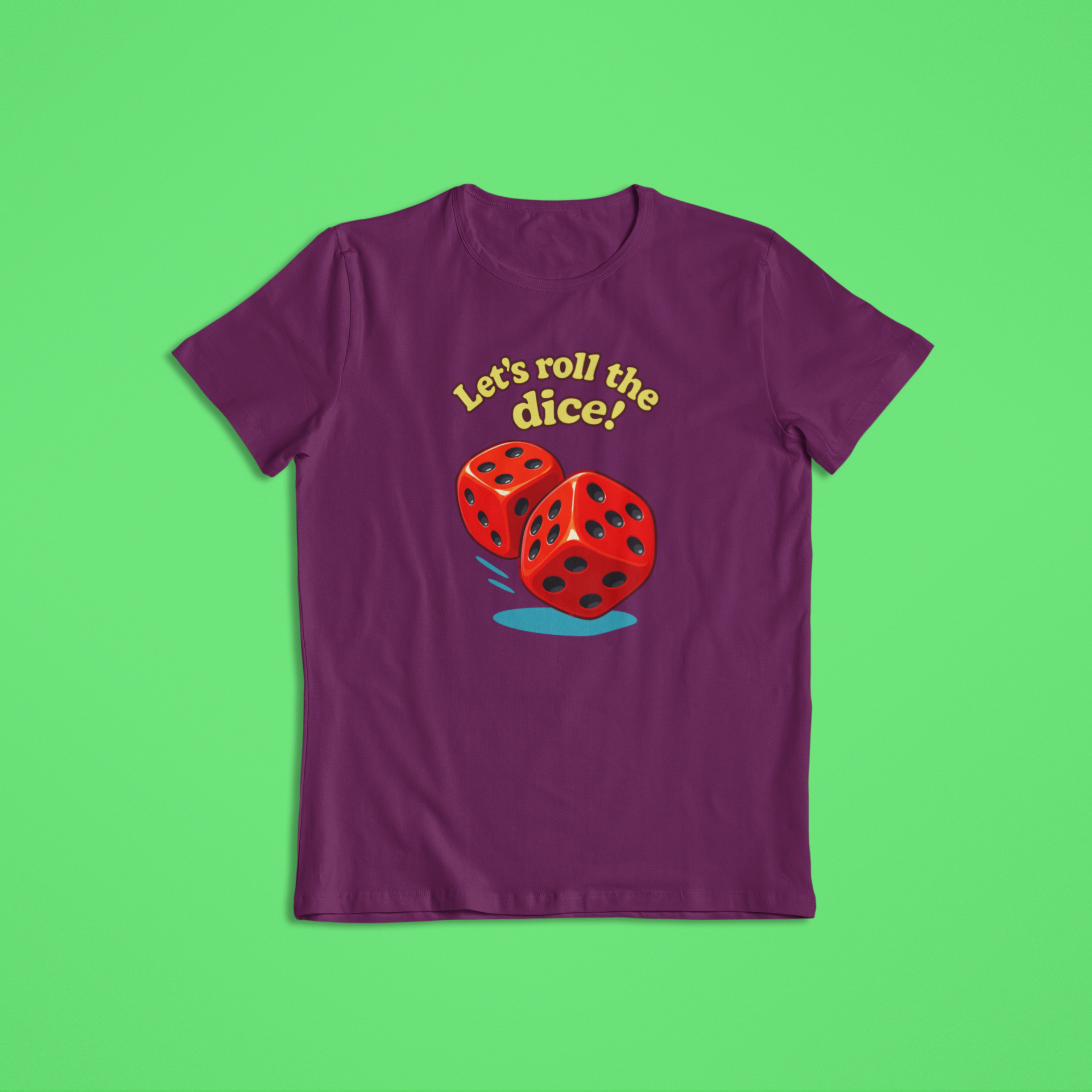 Take a chance and roll in style with our “Let’s Roll the Dice!” T-shirt and hoodie — perfect for game nights, casino parties, or anyone who loves to play with luck! Featuring two bold red dice and a fun retro-style font, this design brings excitement and confidence wherever you go.