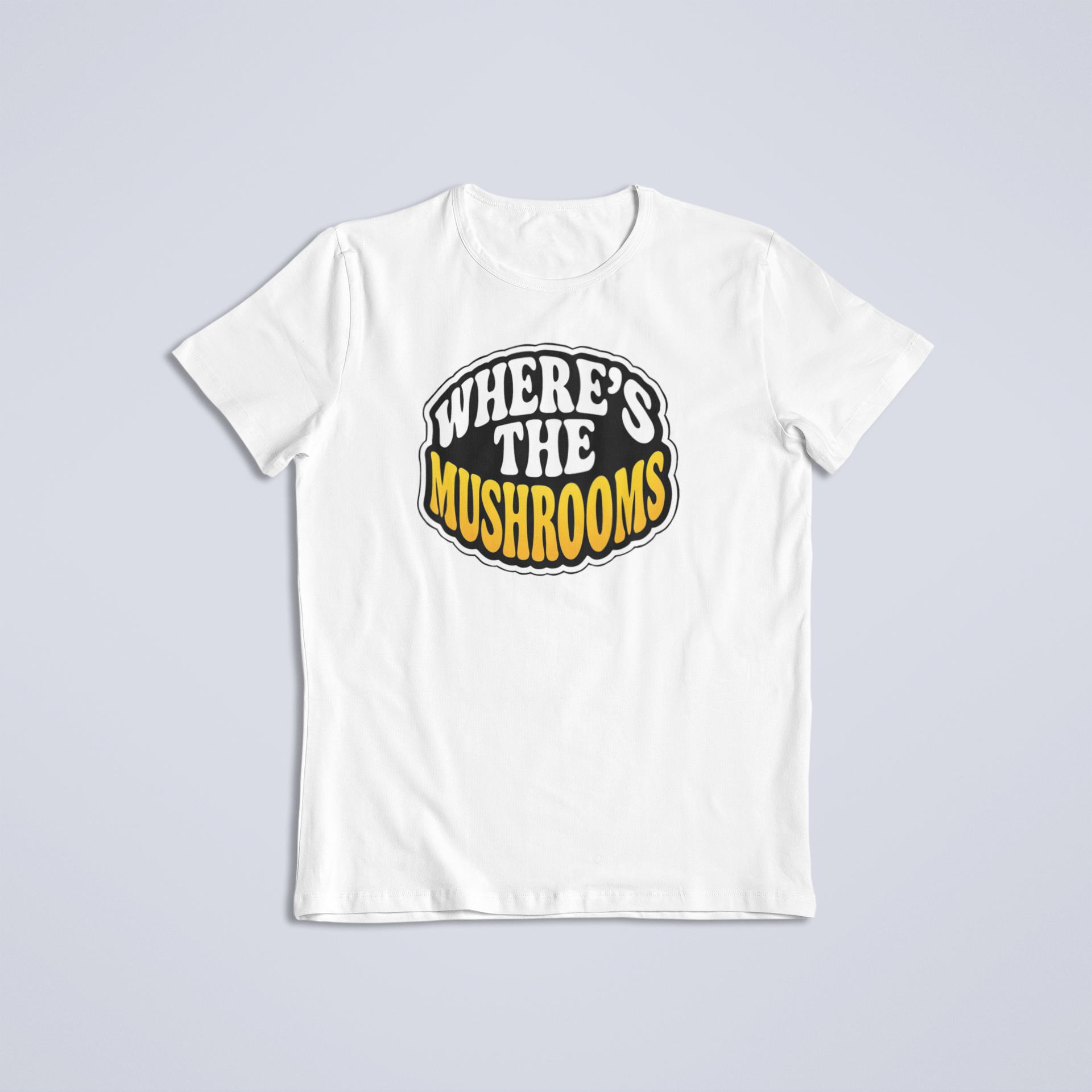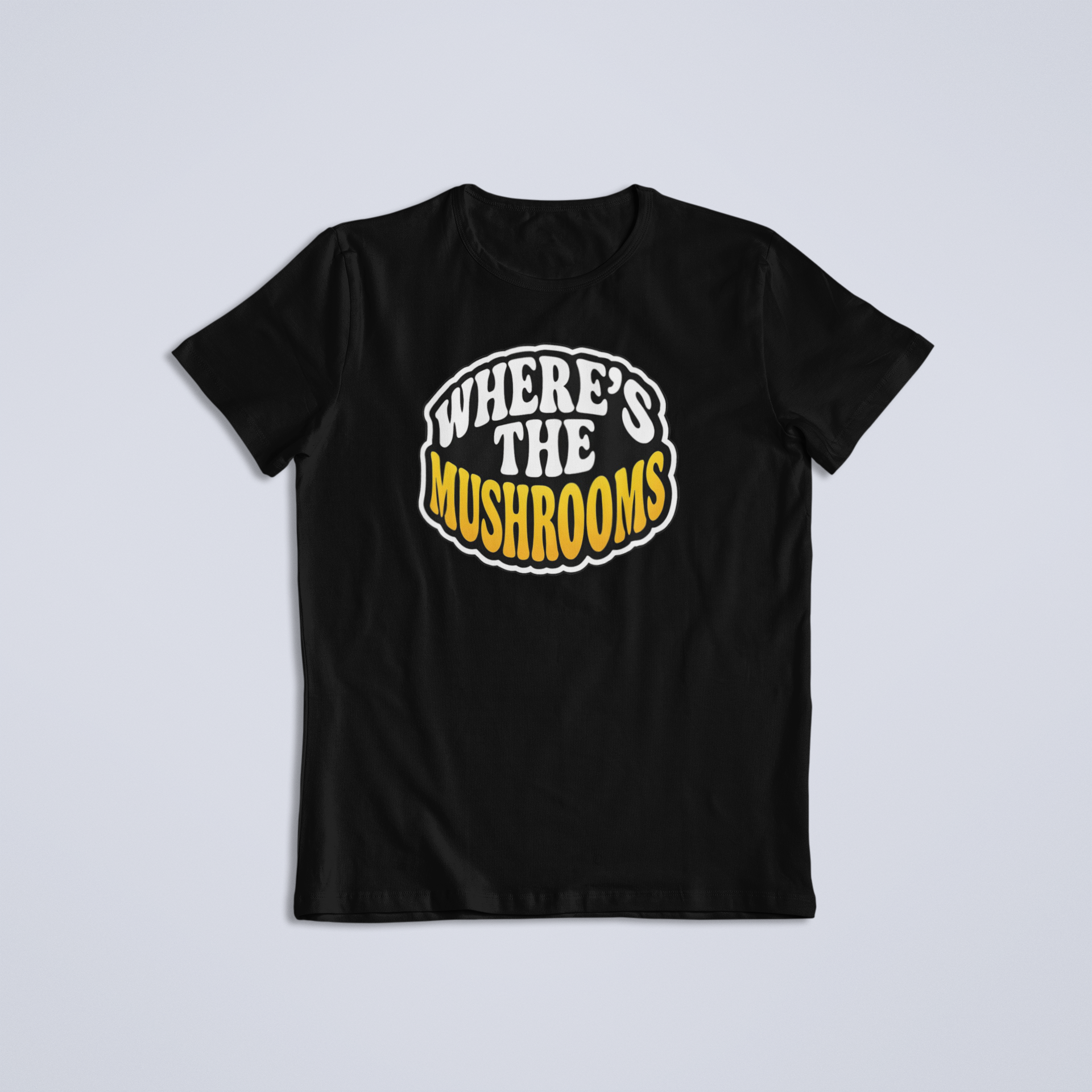 Bold, quirky, and undeniably eye-catching, this “Where’s The Mushrooms” design brings retro psychedelic vibes front and center. Printed on a high-quality T-shirt or hoodie, the design features a fun, bold bubble-style font that stretches and curves with a funky flair, reminiscent of the 60s and 70s rock era. The phrase itself is open to interpretation—perfect for sparking conversations or simply getting a few laughs. Whether you're a mushroom lover, a fan of vintage fonts, or someone who appreciates a clever double entendre, this graphic makes a statement.