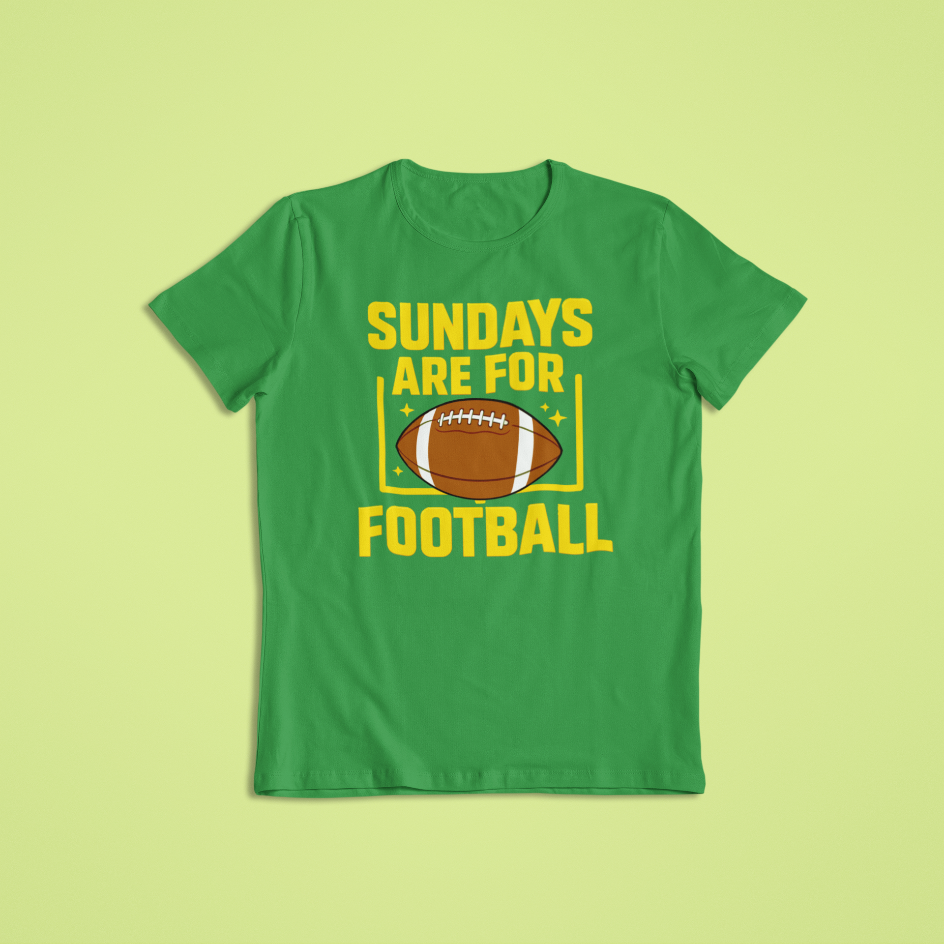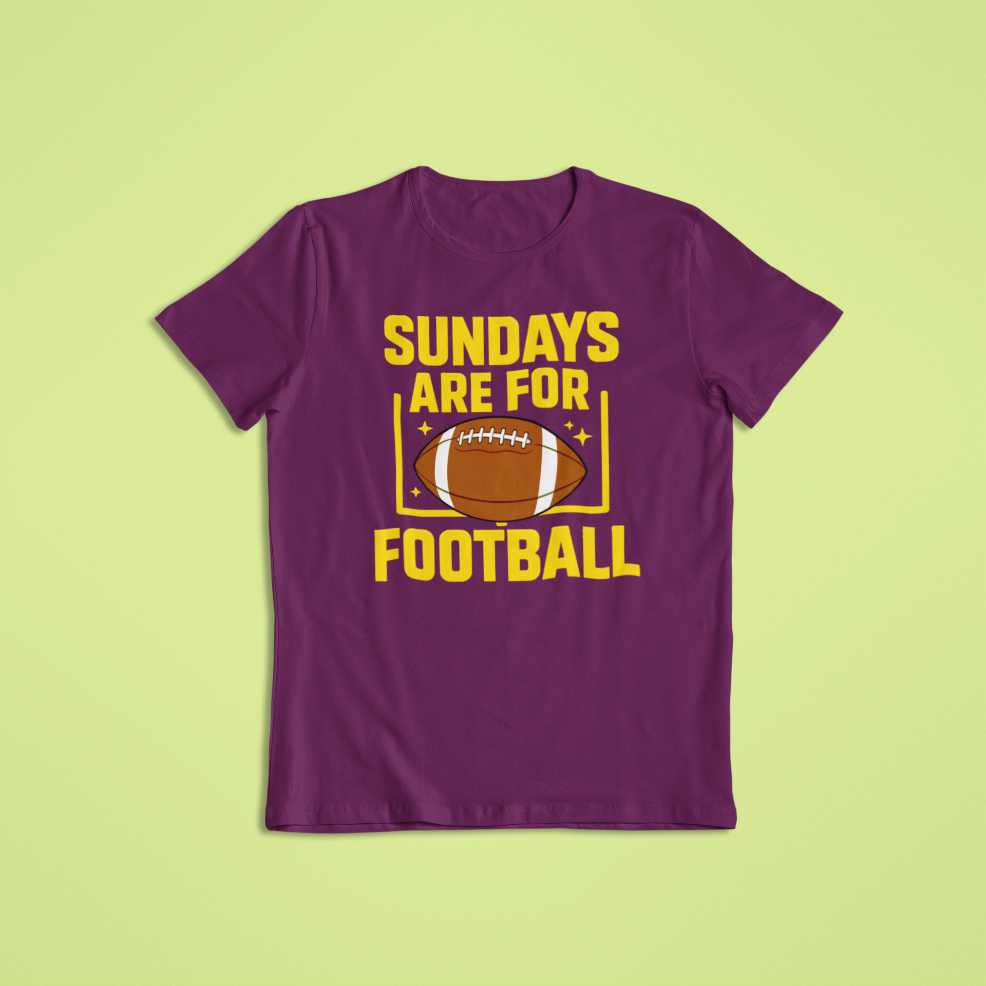 Featuring a classic football graphic framed by goalposts and vibrant yellow lettering, this design captures the spirit of Sunday football like no other. Whether you’re tailgating, cheering from the couch, or hitting the bar with friends, this is your go-to apparel for football season.