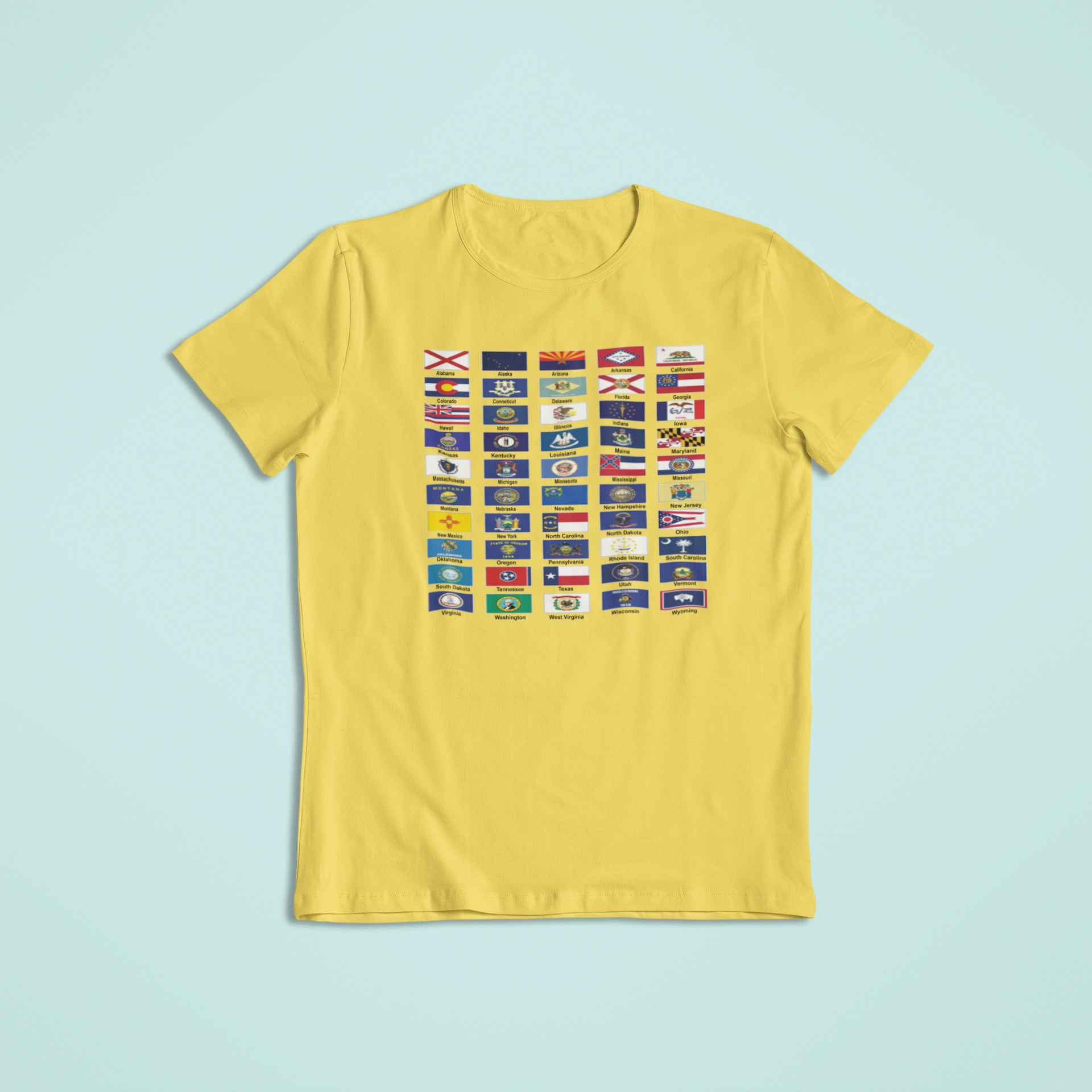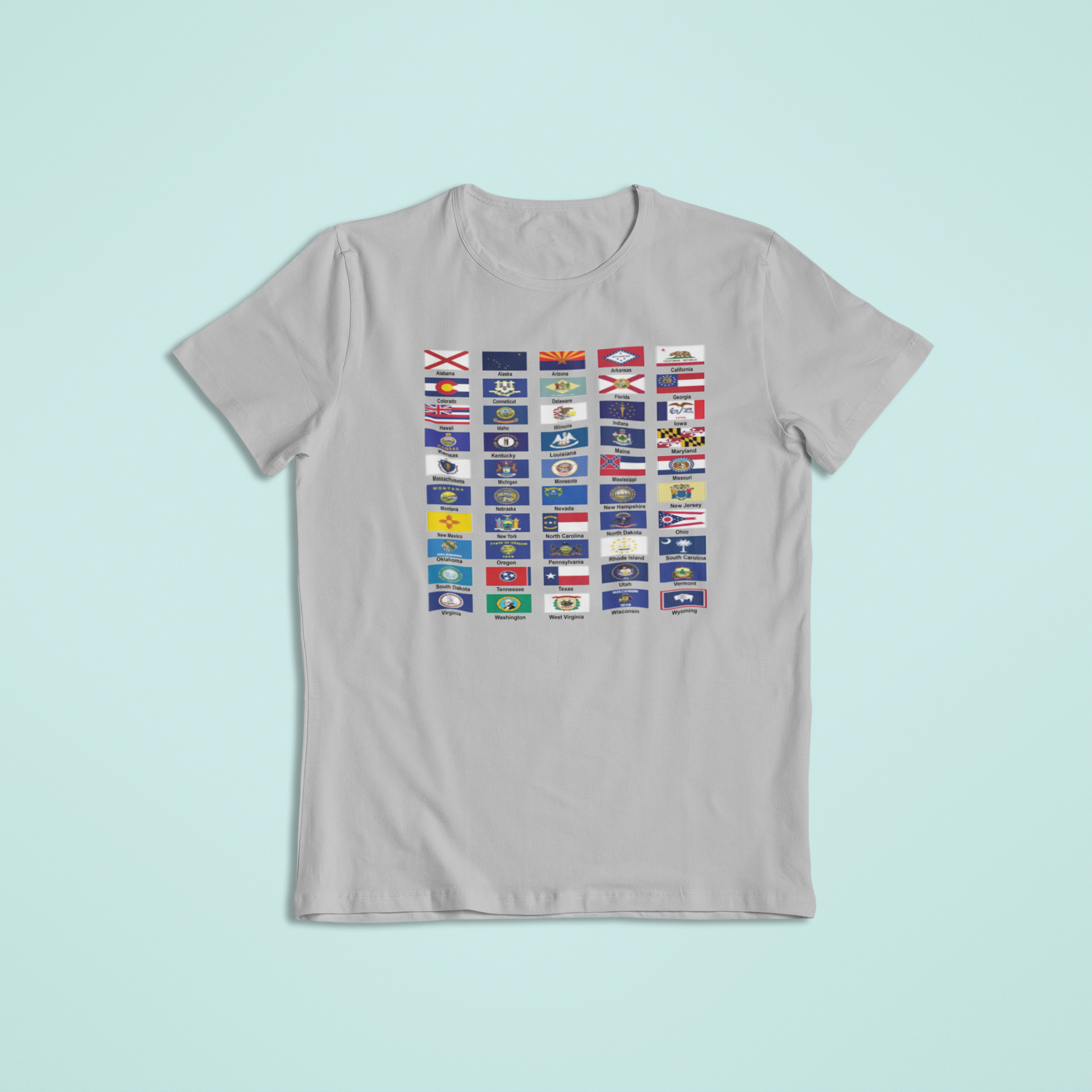 Featuring every official state flag arranged in a clean, eye-catching layout, this design is perfect for anyone who takes pride in American heritage, travel, or state history.
